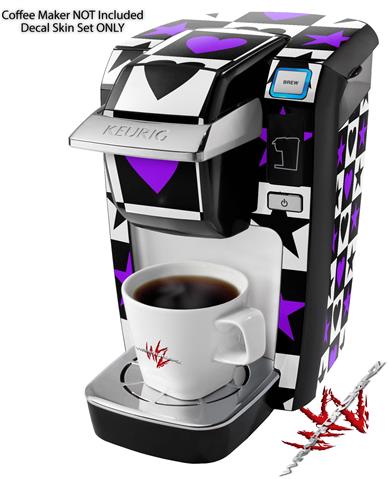 Decal Style Vinyl Skin compatible with Keurig K10 / K15 Mini Plus Coffee Makers Purple Hearts And Stars (KEURIG NOT INCLUDED)