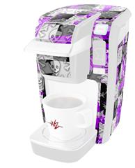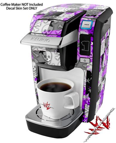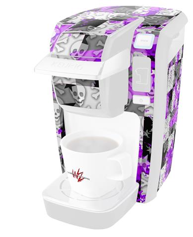 Decal Style Vinyl Skin compatible with Keurig K10 / K15 Mini Plus Coffee Makers Purple Checker Skull Splatter (KEURIG NOT INCLUDED)