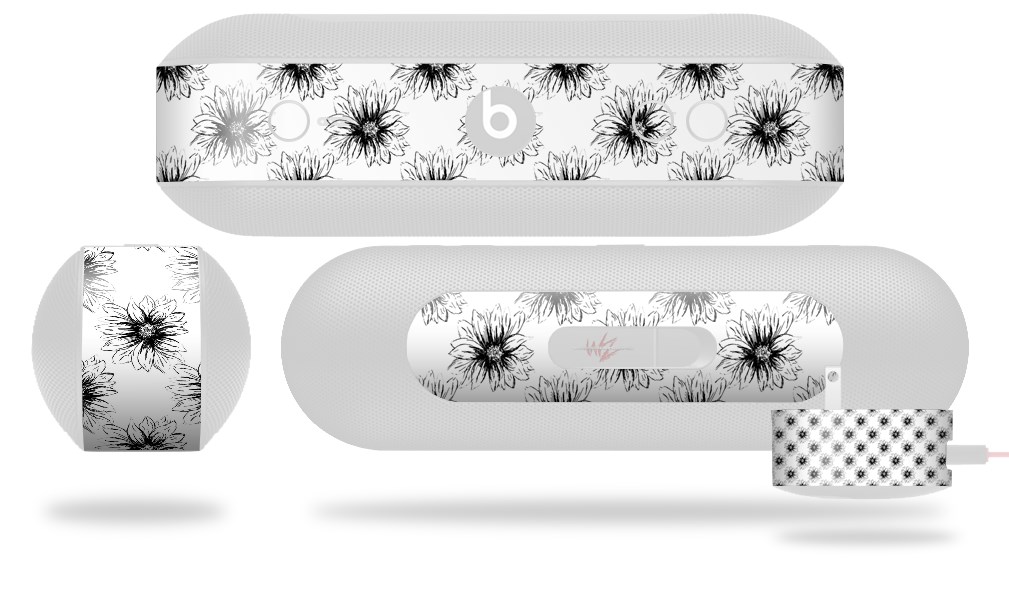 Decal Style Wrap Skin fits Beats Pill Plus Kearas Daisies Black on White (BEATS PILL NOT INCLUDED)