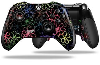 Kearas Flowers on Black - Decal Style Skin fits Microsoft XBOX One ELITE Wireless Controller