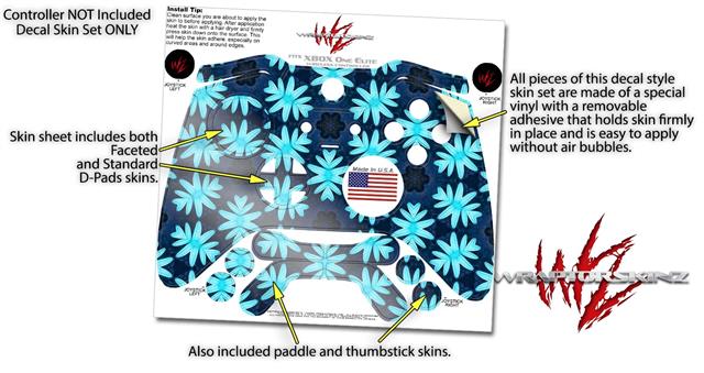 Abstract Floral Blue - Decal Style Skin fits Microsoft XBOX One ELITE Wireless Controller