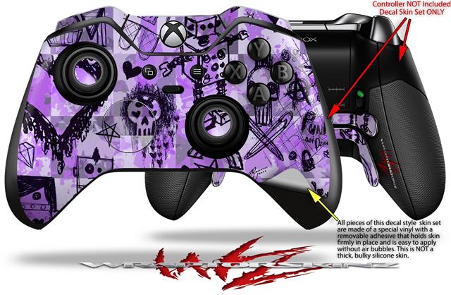 Scene Kid Sketches Purple - Decal Style Skin fits Microsoft XBOX One ELITE Wireless Controller
