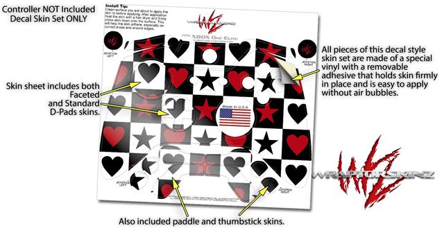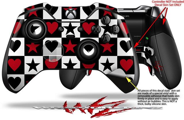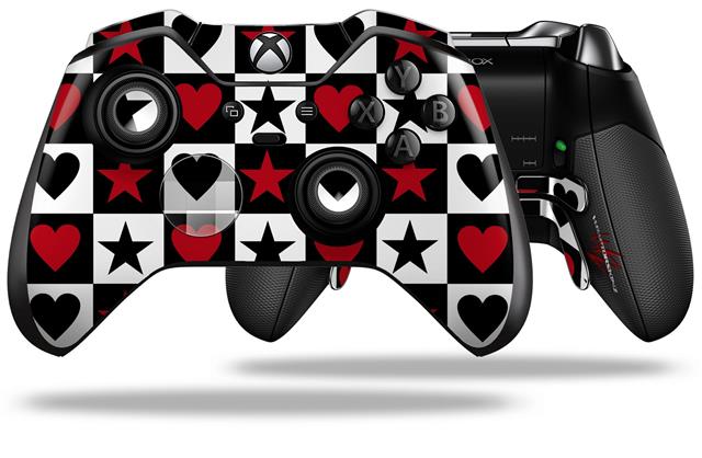 Hearts and Stars Red - Decal Style Skin fits Microsoft XBOX One ELITE Wireless Controller