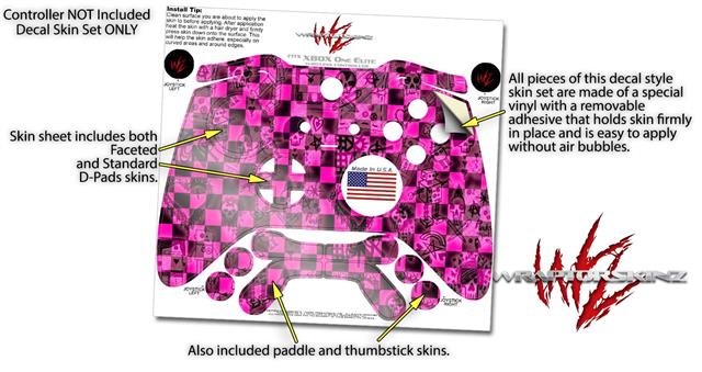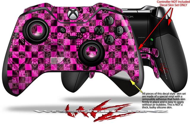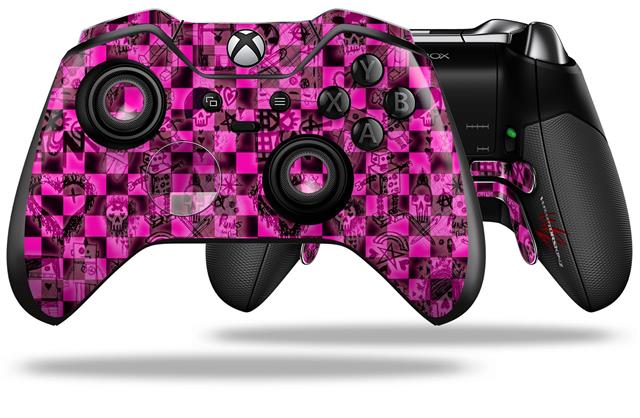 Pink Checkerboard Sketches - Decal Style Skin fits Microsoft XBOX One ELITE Wireless Controller