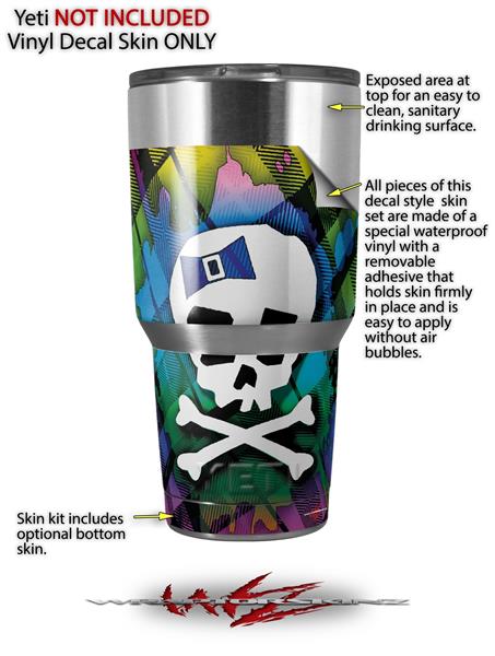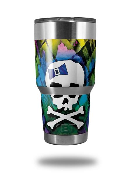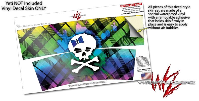 Skin Decal Wrap for Yeti Tumbler Rambler 30 oz Rainbow Plaid Skull (TUMBLER NOT INCLUDED)