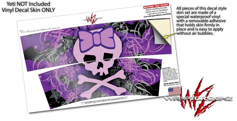 Skin Decal Wrap for Yeti Tumbler Rambler 30 oz Purple Girly Skull (TUMBLER NOT INCLUDED)