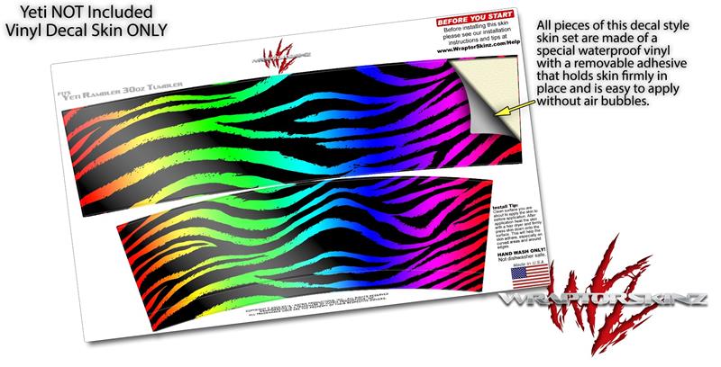 Skin Decal Wrap for Yeti Tumbler Rambler 30 oz Rainbow Zebra (TUMBLER NOT INCLUDED)