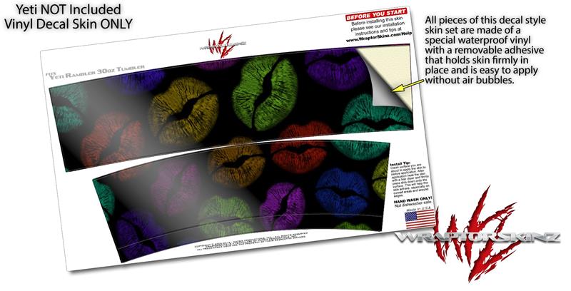Skin Decal Wrap for Yeti Tumbler Rambler 30 oz Rainbow Lips Black (TUMBLER NOT INCLUDED)