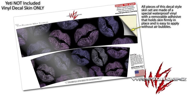 Skin Decal Wrap for Yeti Tumbler Rambler 30 oz Purple And Black Lips (TUMBLER NOT INCLUDED)
