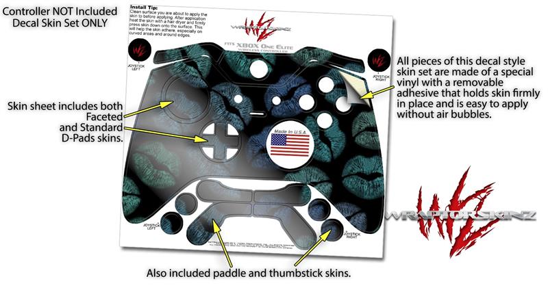 Blue Green And Black Lips - Decal Style Skin fits Microsoft XBOX One ELITE Wireless Controller
