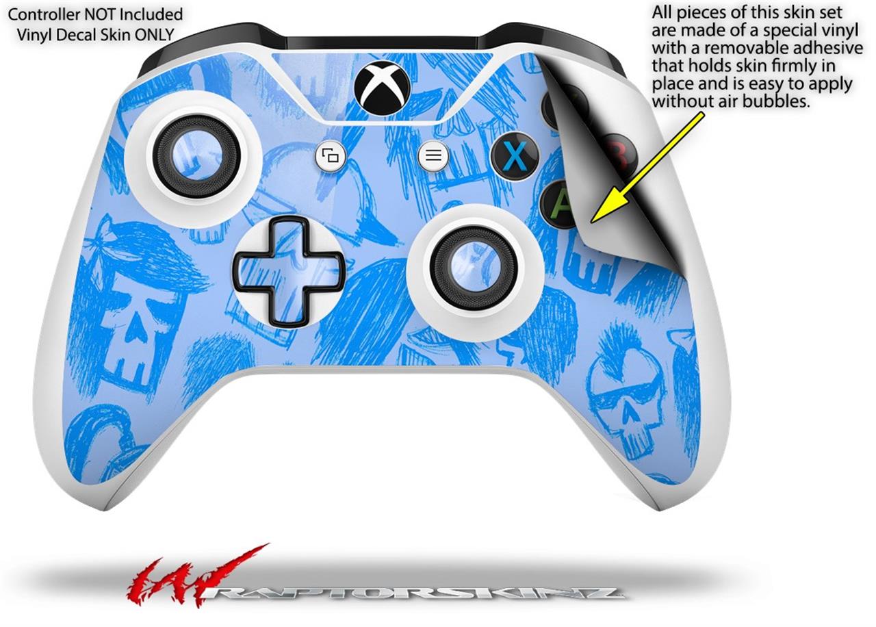 WraptorSkinz Decal Skin Wrap Set works with 2016 and newer XBOX One S / X Controller Skull Sketches Blue (CONTROLLER NOT INCLUDED)