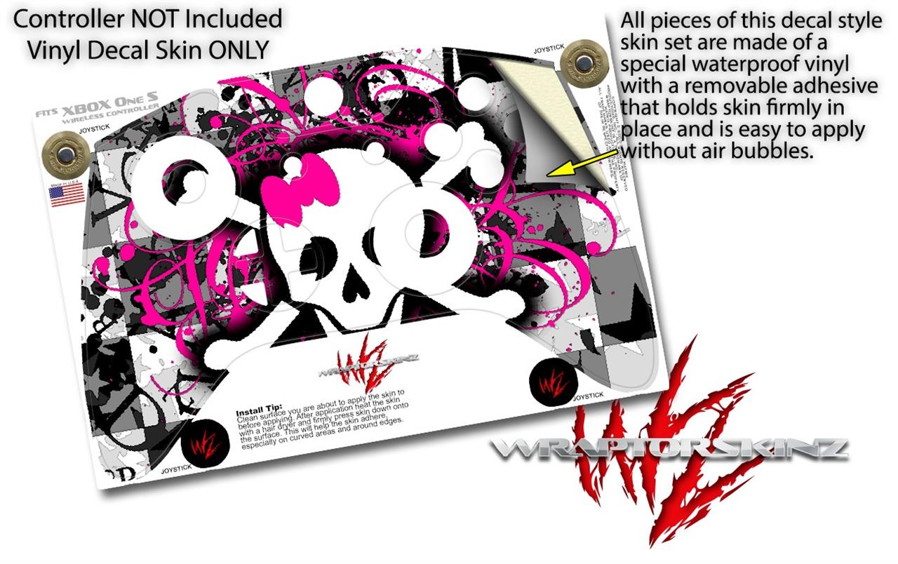 WraptorSkinz Decal Skin Wrap Set works with 2016 and newer XBOX One S / X Controller Splatter Girly Skull (CONTROLLER NOT INCLUDED)