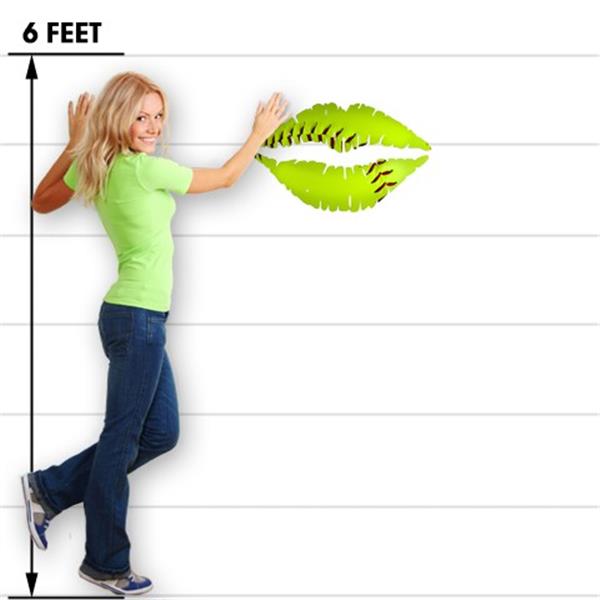 Softball - Kissing Lips Fabric Wall Skin Decal measures 24x15 inches