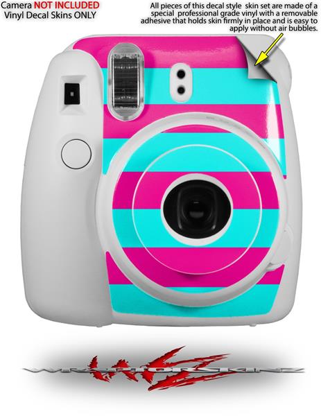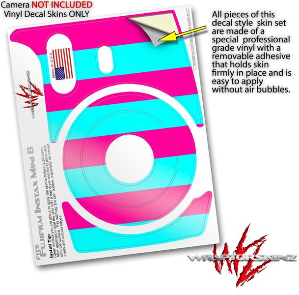 WraptorSkinz Skin Decal Wrap compatible with Fujifilm Mini 8 Camera Psycho Stripes Neon Teal and Hot Pink (CAMERA NOT INCLUDED)