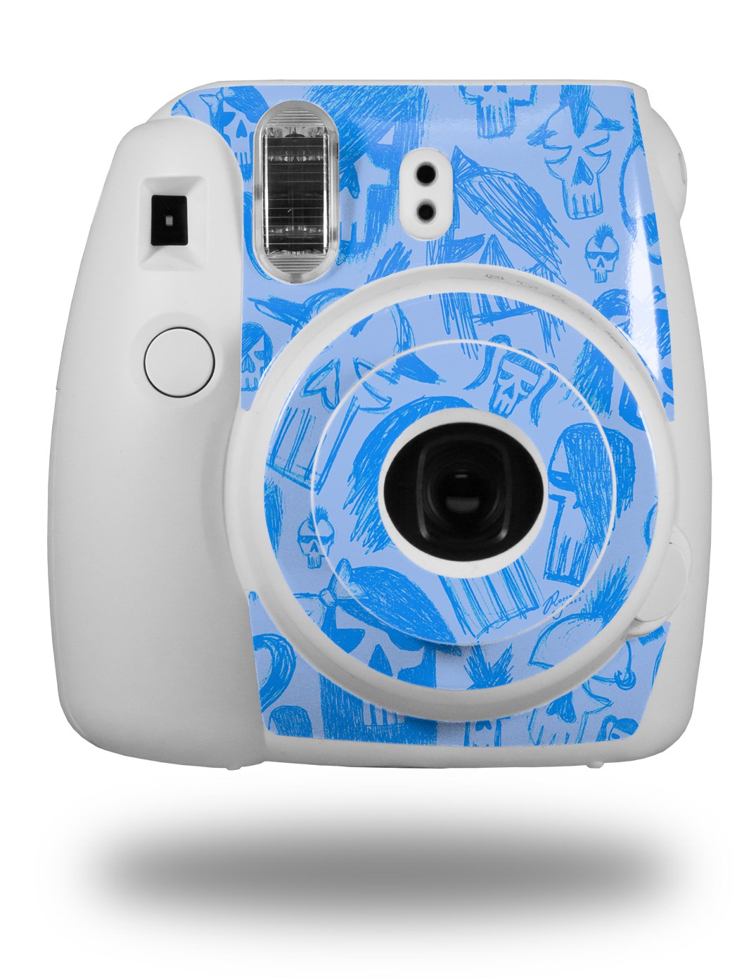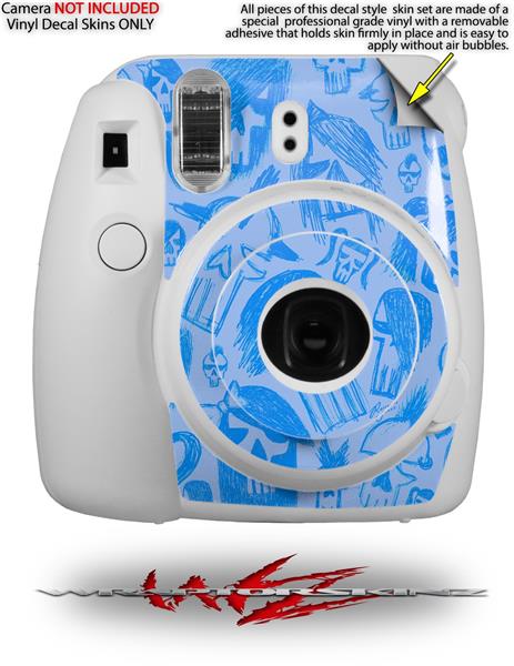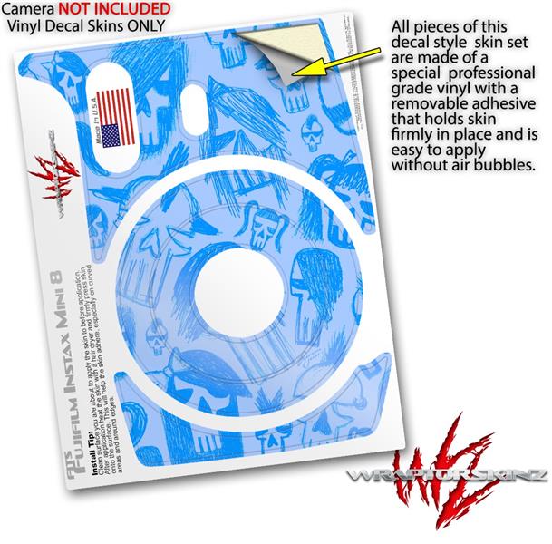 WraptorSkinz Skin Decal Wrap compatible with Fujifilm Mini 8 Camera Skull Sketches Blue (CAMERA NOT INCLUDED)