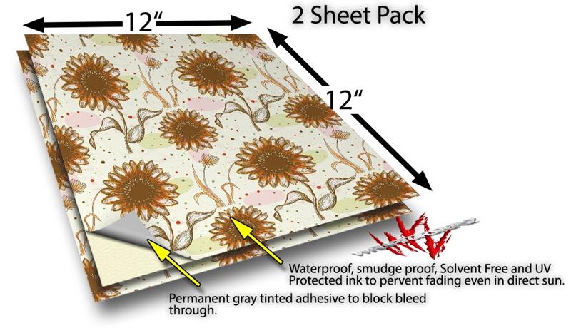WraptoSkinz™ skin vinyl craft sheets are printed using superb photo quality designs and vibrant colors printed with special UV Protected fade resistant inks that last even in direct sun for years. Unlike other brands our inks are NOT solvent based. WraptorSkinz are a manufactured from professional grade 3mill vinyl. These sheets are waterproof, the designs will not run or smear even if submerged in water.
