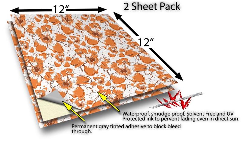 WraptoSkinz™ skin vinyl craft sheets are printed using superb photo quality designs and vibrant colors printed with special UV Protected fade resistant inks that last even in direct sun for years. Unlike other brands our inks are NOT solvent based. WraptorSkinz are a manufactured from professional grade 3mill vinyl. These sheets are waterproof, the designs will not run or smear even if submerged in water.