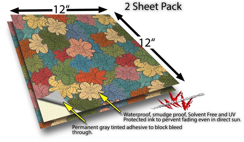 WraptoSkinz™ skin vinyl craft sheets are printed using superb photo quality designs and vibrant colors printed with special UV Protected fade resistant inks that last even in direct sun for years. Unlike other brands our inks are NOT solvent based. WraptorSkinz are a manufactured from professional grade 3mill vinyl. These sheets are waterproof, the designs will not run or smear even if submerged in water.