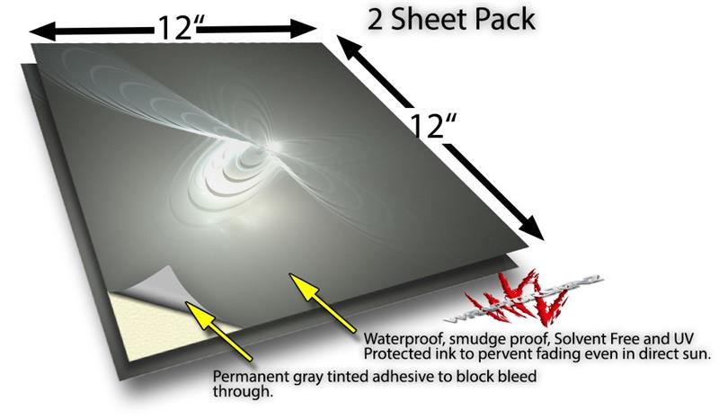 WraptoSkinz™ skin vinyl craft sheets are printed using superb photo quality designs and vibrant colors printed with special UV Protected fade resistant inks that last even in direct sun for years. Unlike other brands our inks are NOT solvent based. WraptorSkinz are a manufactured from professional grade 3mill vinyl. These sheets are waterproof, the designs will not run or smear even if submerged in water.