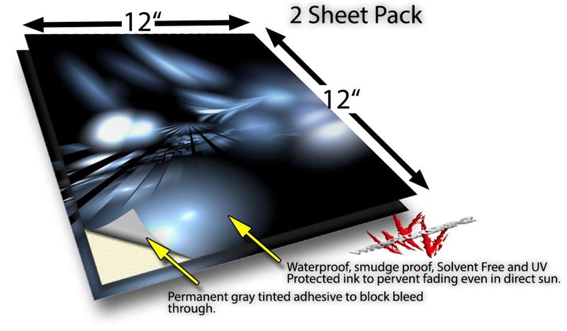 WraptoSkinz™ skin vinyl craft sheets are printed using superb photo quality designs and vibrant colors printed with special UV Protected fade resistant inks that last even in direct sun for years. Unlike other brands our inks are NOT solvent based. WraptorSkinz are a manufactured from professional grade 3mill vinyl. These sheets are waterproof, the designs will not run or smear even if submerged in water.