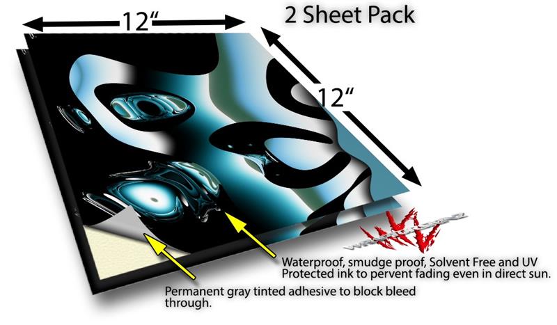 WraptoSkinz™ skin vinyl craft sheets are printed using superb photo quality designs and vibrant colors printed with special UV Protected fade resistant inks that last even in direct sun for years. Unlike other brands our inks are NOT solvent based. WraptorSkinz are a manufactured from professional grade 3mill vinyl. These sheets are waterproof, the designs will not run or smear even if submerged in water.