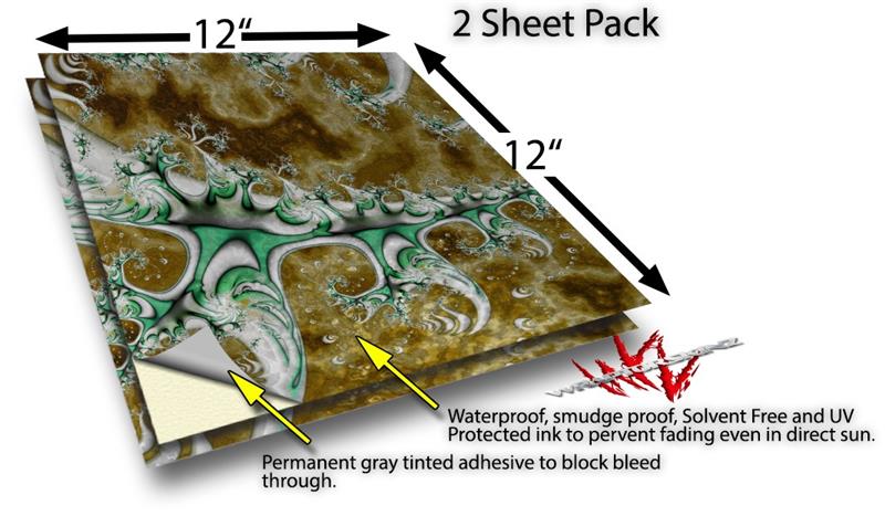 WraptoSkinz™ skin vinyl craft sheets are printed using superb photo quality designs and vibrant colors printed with special UV Protected fade resistant inks that last even in direct sun for years. Unlike other brands our inks are NOT solvent based. WraptorSkinz are a manufactured from professional grade 3mill vinyl. These sheets are waterproof, the designs will not run or smear even if submerged in water.