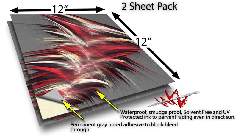 WraptoSkinz™ skin vinyl craft sheets are printed using superb photo quality designs and vibrant colors printed with special UV Protected fade resistant inks that last even in direct sun for years. Unlike other brands our inks are NOT solvent based. WraptorSkinz are a manufactured from professional grade 3mill vinyl. These sheets are waterproof, the designs will not run or smear even if submerged in water.