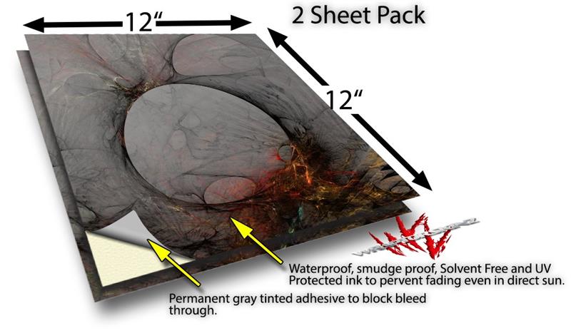 WraptoSkinz™ skin vinyl craft sheets are printed using superb photo quality designs and vibrant colors printed with special UV Protected fade resistant inks that last even in direct sun for years. Unlike other brands our inks are NOT solvent based. WraptorSkinz are a manufactured from professional grade 3mill vinyl. These sheets are waterproof, the designs will not run or smear even if submerged in water.