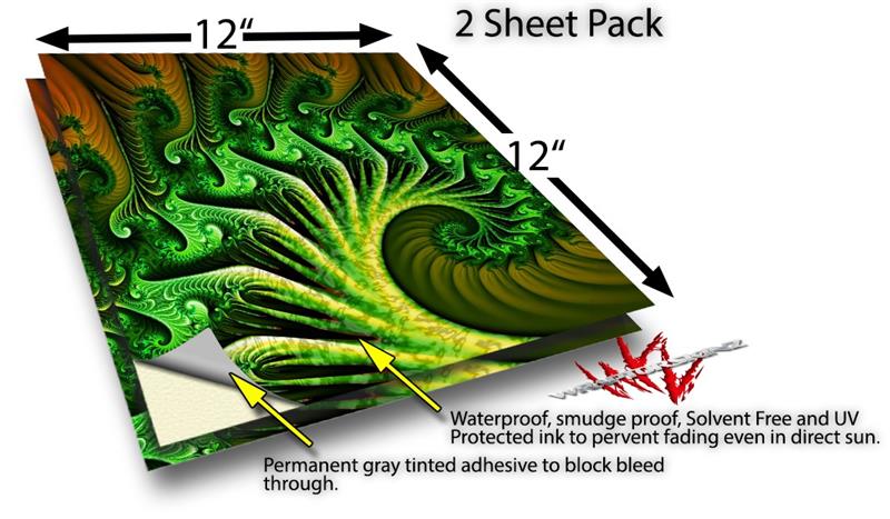 WraptoSkinz™ skin vinyl craft sheets are printed using superb photo quality designs and vibrant colors printed with special UV Protected fade resistant inks that last even in direct sun for years. Unlike other brands our inks are NOT solvent based. WraptorSkinz are a manufactured from professional grade 3mill vinyl. These sheets are waterproof, the designs will not run or smear even if submerged in water.