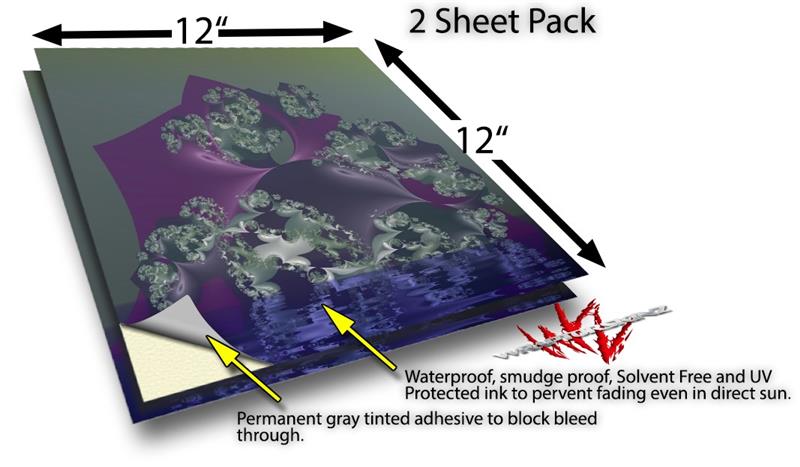 WraptoSkinz™ skin vinyl craft sheets are printed using superb photo quality designs and vibrant colors printed with special UV Protected fade resistant inks that last even in direct sun for years. Unlike other brands our inks are NOT solvent based. WraptorSkinz are a manufactured from professional grade 3mill vinyl. These sheets are waterproof, the designs will not run or smear even if submerged in water.