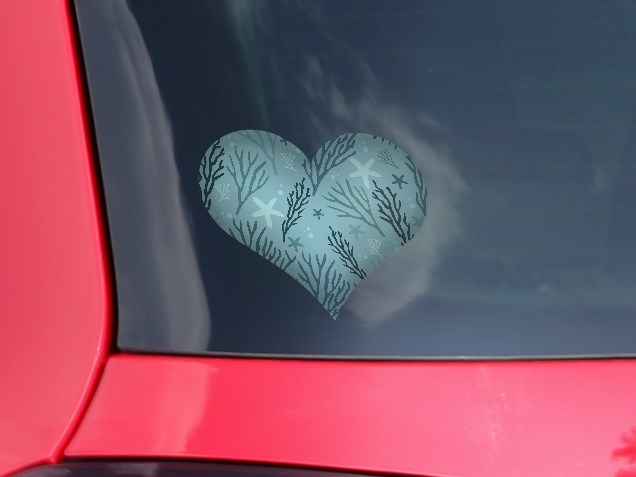 Sea Blue - I Heart Love Car Window Decal 6.5 x 5.5 inches