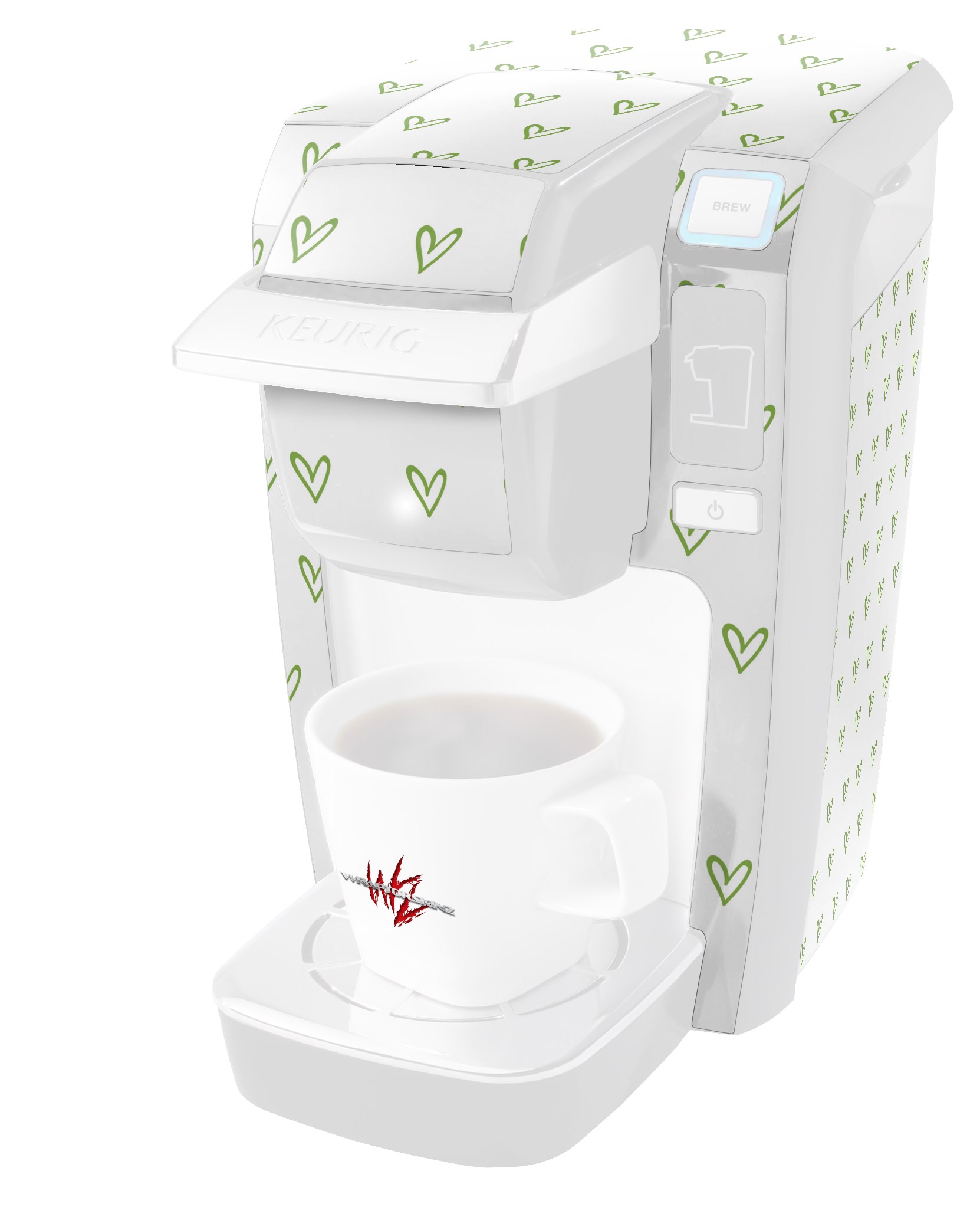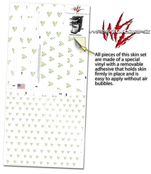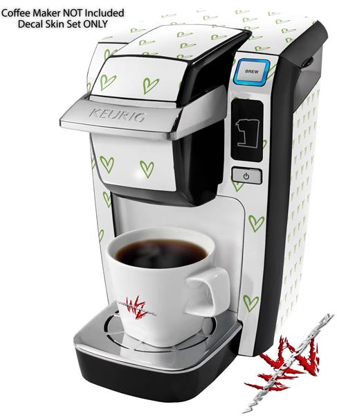 Decal Style Vinyl Skin compatible with Keurig K10 / K15 Mini Plus Coffee Makers Hearts Green (KEURIG NOT INCLUDED)