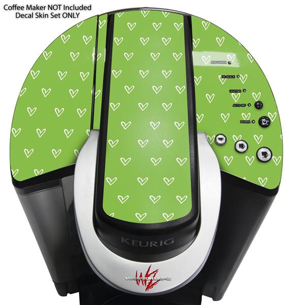 Decal Style Vinyl Skin compatible with Keurig K40 Elite Coffee Makers Hearts Green On White (KEURIG NOT INCLUDED)