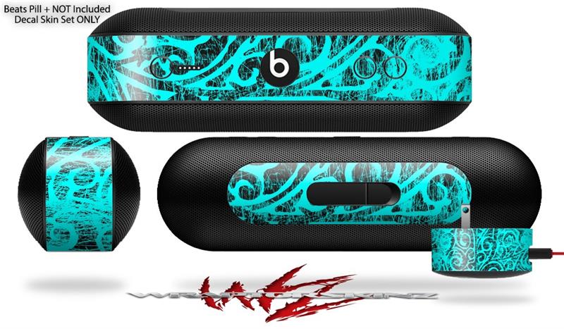 Decal Style Wrap Skin fits Beats Pill Plus Folder Doodles Neon Teal (BEATS PILL NOT INCLUDED)