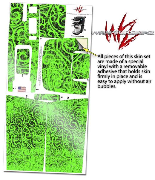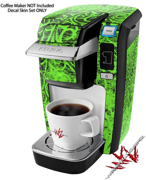 Decal Style Vinyl Skin compatible with Keurig K10 / K15 Mini Plus Coffee Makers Folder Doodles Neon Green (KEURIG NOT INCLUDED)