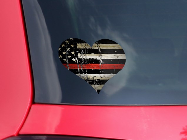 Painted Faded and Cracked Red Line USA American Flag - I Heart Love Car Window Decal 6.5 x 5.5 inches
