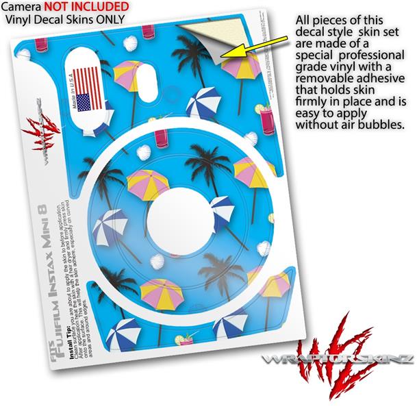 WraptorSkinz Skin Decal Wrap compatible with Fujifilm Mini 8 Camera Beach Party Umbrellas Blue Medium (CAMERA NOT INCLUDED)