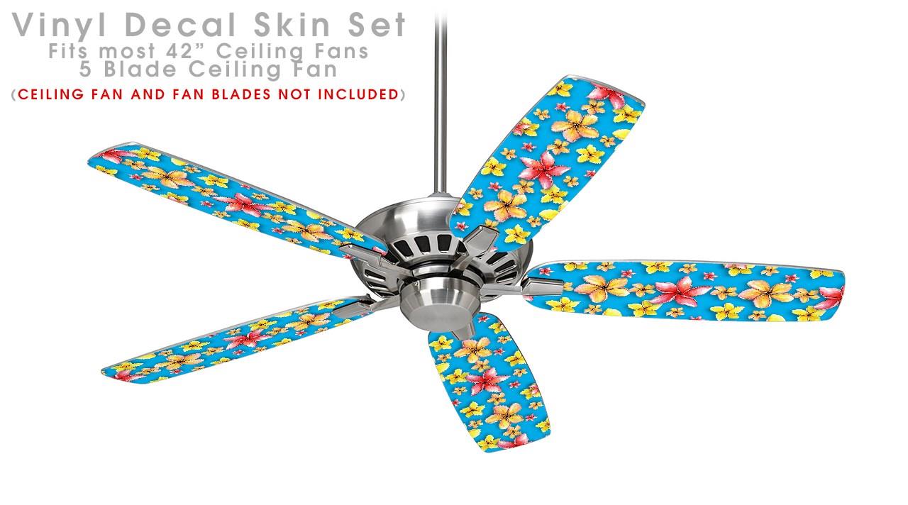 Beach Flowers Blue Medium - Ceiling Fan Skin Kit fits most 42 inch fans (FAN and BLADES SOLD SEPARATELY)