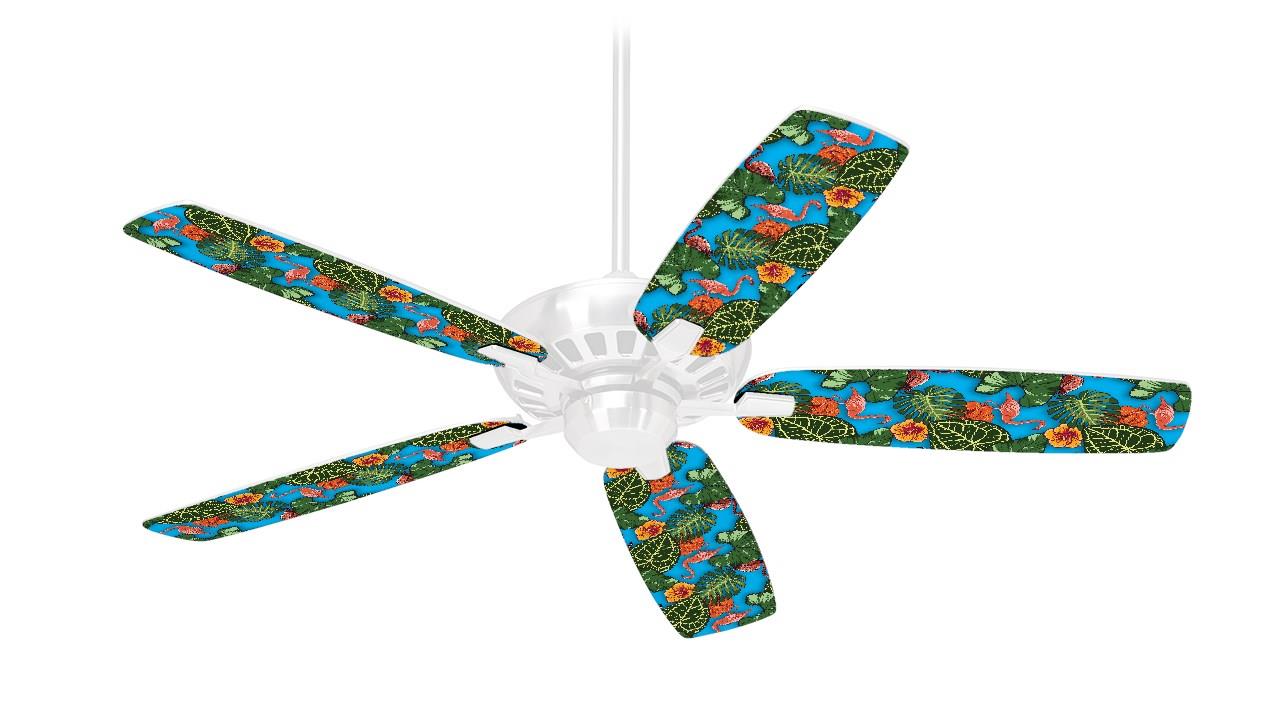 Famingos and Flowers Blue Medium - Ceiling Fan Skin Kit fits most 42 inch fans (FAN and BLADES SOLD SEPARATELY)