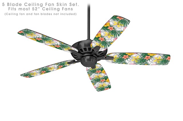 Beach Flowers 02 White - Ceiling Fan Skin Kit fits most 52 inch fans (FAN and BLADES SOLD SEPARATELY)