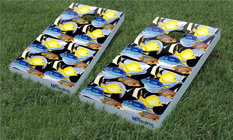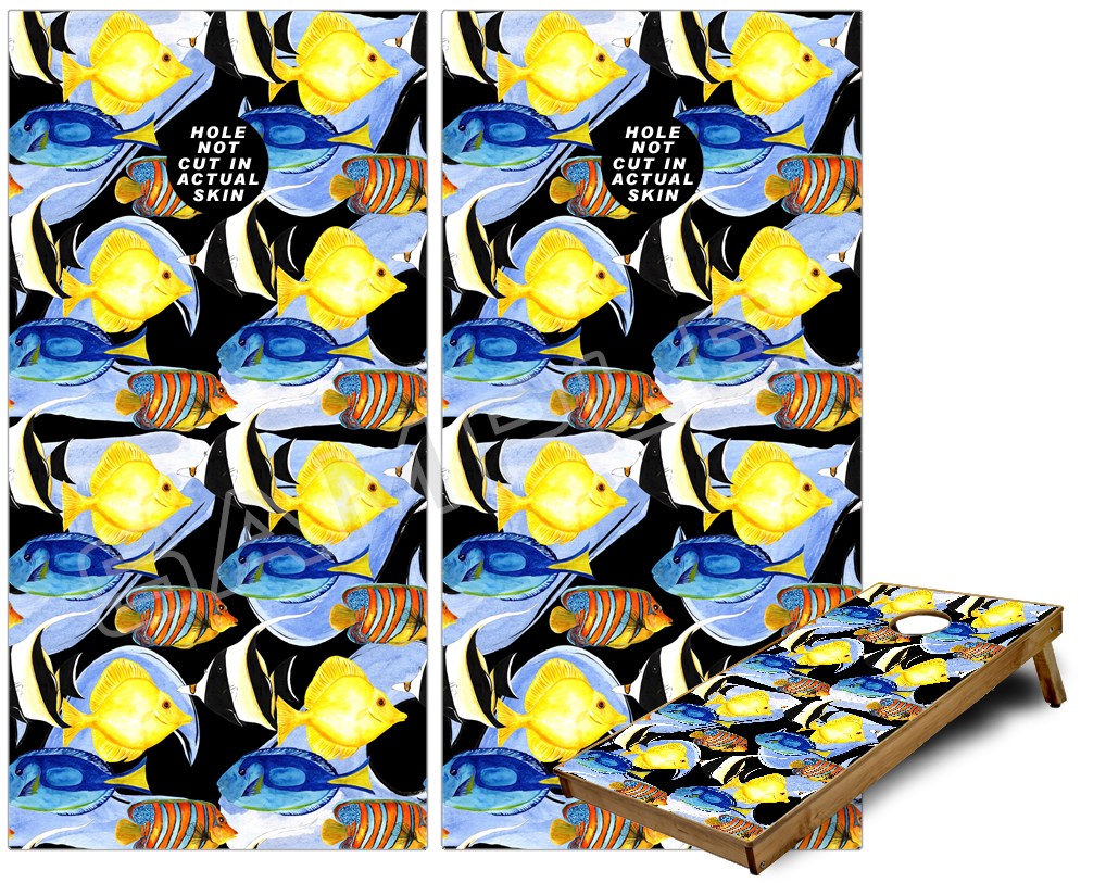 Cornhole Game Board Vinyl Skin Wrap Kit - Tropical Fish 01 Black fits 24x48 game boards (GAMEBOARDS NOT INCLUDED)