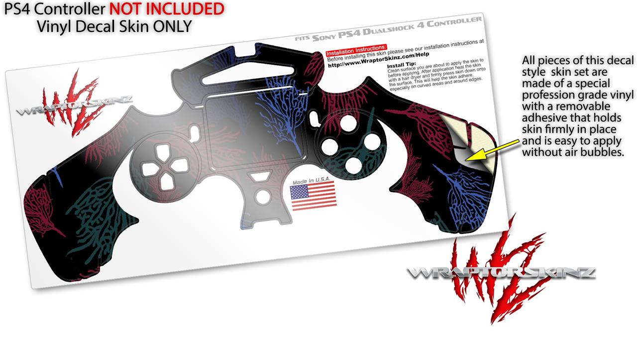 WraptorSkinz Skin compatible with Sony PS4 Dualshock Controller PlayStation 4 Original Slim and Pro Floating Coral Black (CONTROLLER NOT INCLUDED)