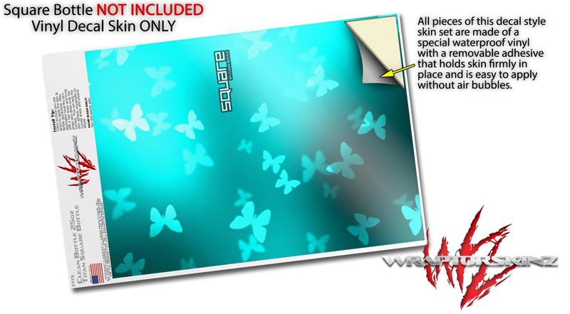 Skin Decal Wrap for Clean Bottle Square Titan Plastic 25oz Bokeh Butterflies Neon Teal (BOTTLE NOT INCLUDED)