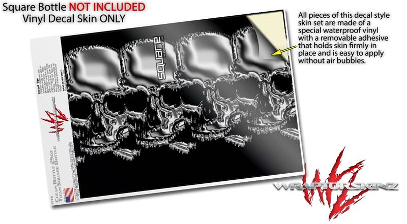 Skin Decal Wrap for Clean Bottle Square Titan Plastic 25oz Chrome Skull on Black (BOTTLE NOT INCLUDED)