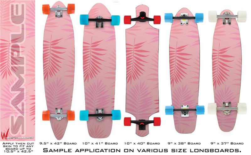 Our longboard skins are made so that one size fits boards up to 10” wide x 42” long. This means after applying the skin it you will trimming to fit you’re the shape of your board with a sharp utility knife.