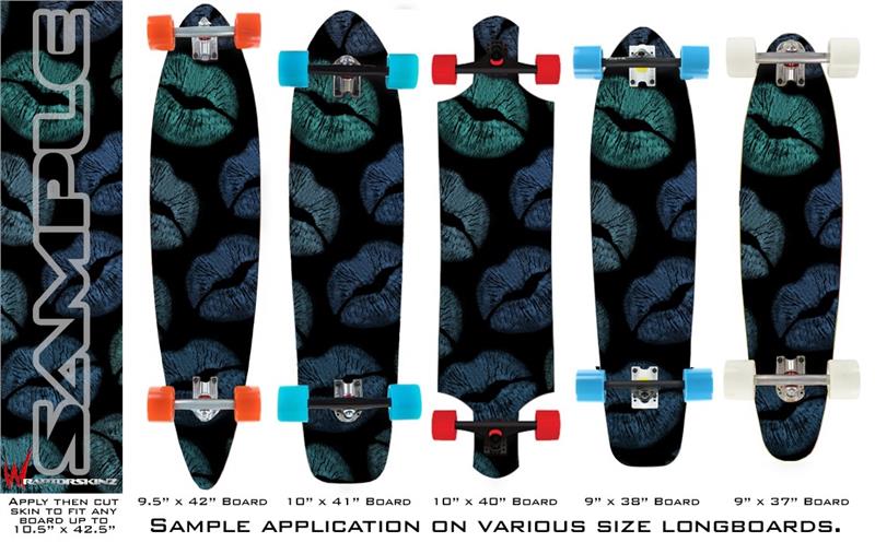 Blue Green And Black Lips - Decal Style Vinyl Wrap Skin fits Longboard Skateboards up to 10"x42" (LONGBOARD NOT INCLUDED)