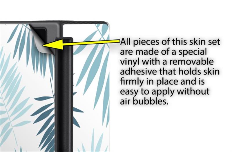 WraptoSkinz™ skins are superb photo quality designs and vibrant colors printed with special Eco-Friendly, fade resistant inks. Our skins are self-adhering flexible vinyl skins that helps prevent scratches. Made of composite, multi-layered commercial grade materials. The bottom layer is made with a special removable adhesive that is easily positioned and applied without air bubbles. We print your design on the bottom layer then bond a professional grade laminate over the entire skin adding a glossy protective finish.