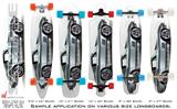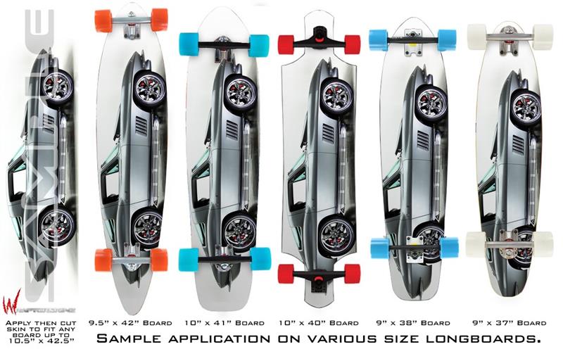 Our longboard skins are made so that one size fits boards up to 10” wide x 42” long. This means after applying the skin it you will trimming to fit you’re the shape of your board with a sharp utility knife.