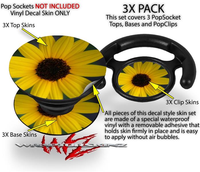 Decal Style Vinyl Skin Wrap 3 Pack for PopSockets Yellow Daisy (POPSOCKET NOT INCLUDED)
